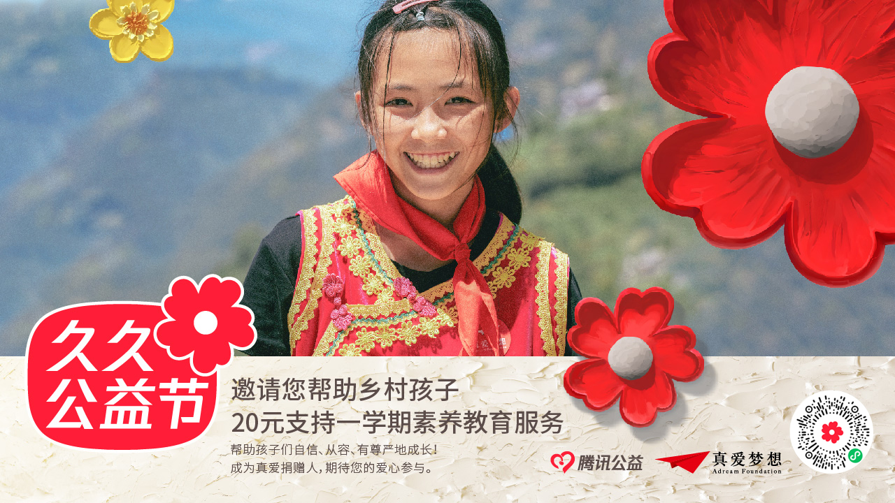 今年是腾讯99公益日的第十年。上海真爱梦想公益基金会真诚邀请您支持成千上万像董祝老师一样扎根农村的梦想老师,帮助更多的农村孩子自信、冷静、有尊严地成长,开启“腾讯公益”小程序,搜索儿童素养教育计划,期待您的捐赠支持。