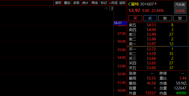 早上汽车股集体上涨,板块指数连续第四天上涨,创下一个月来的新高。刚上市3日,新股富特科技盘涨幅超过22%,动力新科、长春一东、襄阳轴承等。都在上涨,日线涨停垂直封闭。