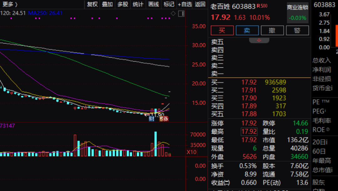 今天早上老百姓又一次涨停,这是该股连续第四个交易日的涨停。