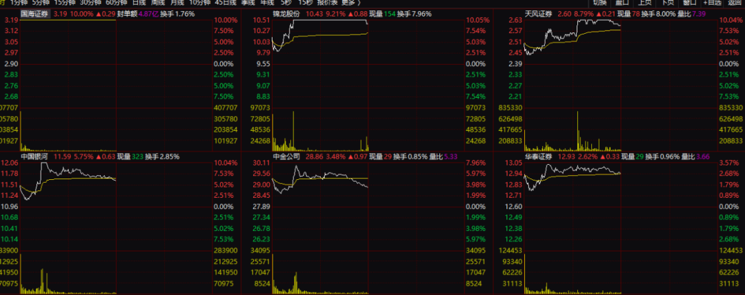 市场数据显示,券商板块盘中涨幅一度在3%左右,国海证券、锦龙股份、天风证券等多芯盘中一度触及涨停。