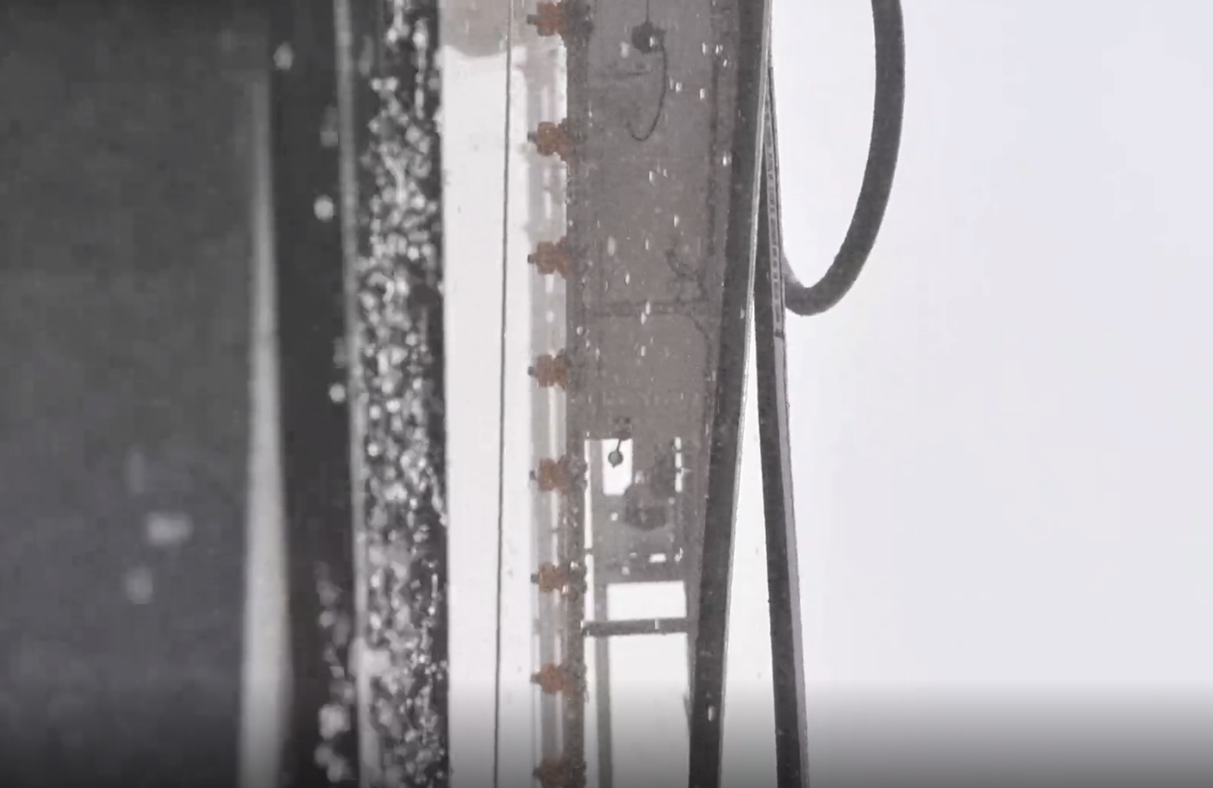 机器人可以在淋水时模拟暴雨天气。录像截图