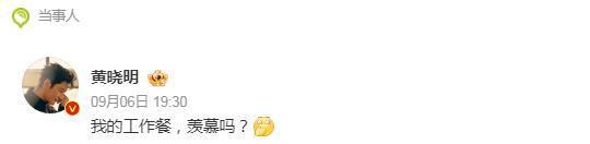 原来,在 9 月 6 那天,黄晓明在社交平台上发了一条信息:“我的员工餐,羡慕吗?”