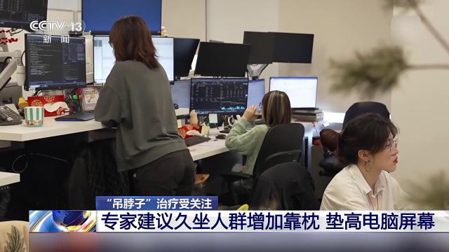 长时间坐着的人可以在椅背上增加枕头,保持腰椎生理性前凸;挺胸挺直,注意保持良好的坐姿,不要长时间跷二郎腿;也可以用支架抬高电脑屏幕,保护脊柱健康。