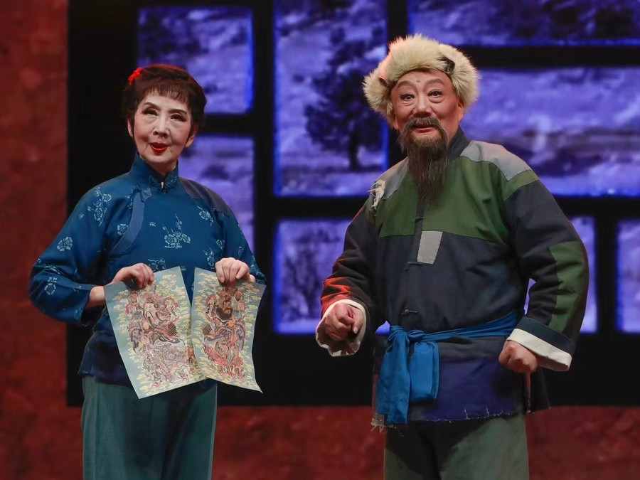 在京剧《白毛女》中,章晓申和妻子吴海燕一起演唱了《扎红头绳》 卢雯摄