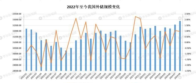 国家外汇管理局表示,2024年8月,由于主要经济体宏观数据和货币政策预期等因素,美元指数下跌,全球资产价格整体上涨。汇率转换和资产价格变化等因素综合作用,当月外汇储备规模上升。中国经济稳定运行和长期改善的发展形势不会改变,这将为外汇储备规模保持基本稳定提供支撑。