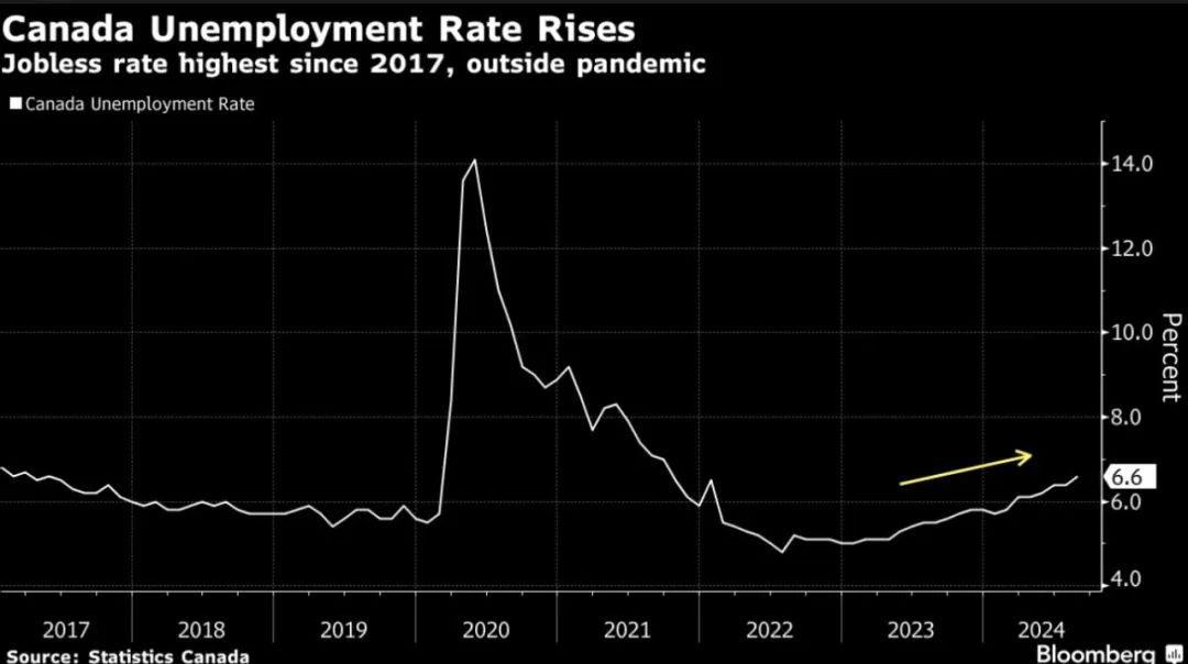 加拿大的失业率跃升至 6.6%。为 2017 到目前为止(Covid19) 除外)