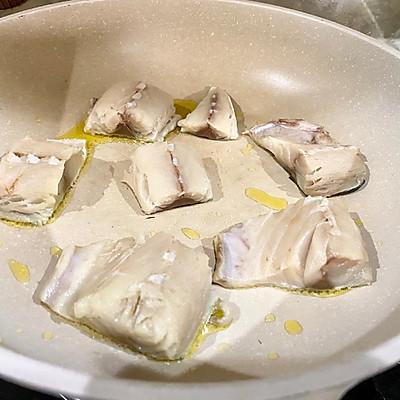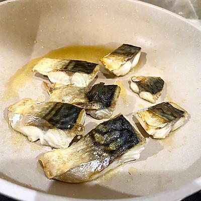 4、煎至两面发黄,青花鱼本身含有油脂,在煎煮过程中会逼出一些油脂,可倒掉,也可留下;