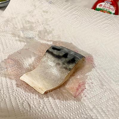 2、切好的青花鱼用厨房纸巾擦干水分;