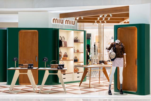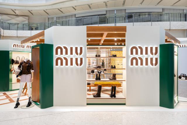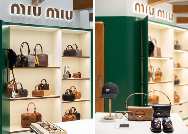 首先能去 ifc,本周四 Miu Miu 带到了商场的中庭 Miu Balmoral 系列限时店,其中主角自然是全新亮相的。 Miu Balmoral 系列了。