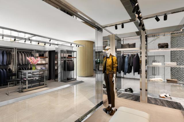 这家商店带来了品牌男装线,这里有新一季的服装和配饰,其中有手工定制的西服, 2024 冬季系列的各种针织产品——而且这里还提供了世界上第一款男性针织产品的量身定制(Made to Measure)服务。此外,还有可供选择的飞行员皮夹克、外套和外套(这部分呼应了目前流行的飞行员风格),还有店铺专属配色。