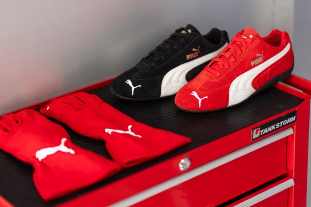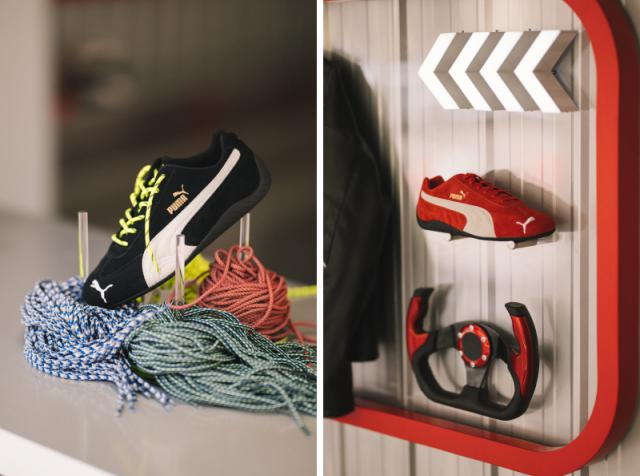 而且这个活动的主角是最近品牌推广的主角。 PUMA Speedcat,第一批出现的有黑红两款,原型是黑红两款。 1984 年 PUMA 为 F1 打造的跑车鞋,以后这款鞋型就成了许多赛车迷的选择——这也是很适合日常穿着开车的鞋型。此外作为"Ros é 朴彩英同款“,也让它更受关注。假如现场还没有体验过,也可以去店里再仔细尝试一下。