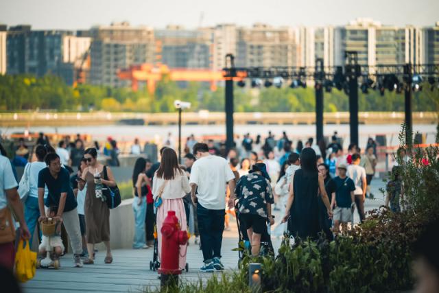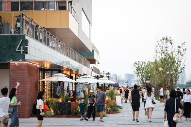 西岸梦中心重塑后,成为五大区域的商业综合体,汇聚了表演文化区、可持续时尚区、微度假休息区、梦工场、优秀城市户外区。 800 滨江沿岸有米长,有 180 度的江景外摆空间,也有不同的业态和滨水场景的冲击,项目还融入了自然景观、艺术潮流、跑步健身、骑自行车生活习惯等概念,这就带来了丰富的游览体验。