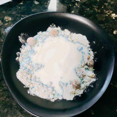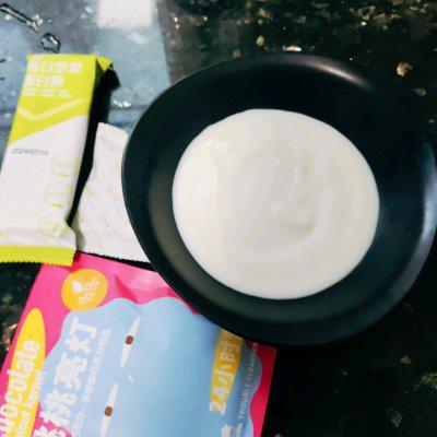 3、在酸奶周围撒上海浴蛋白粉,然后放上自己喜欢的坚果。