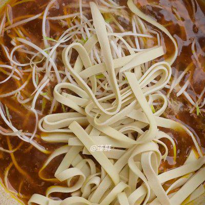 2、依次加入豆芽、豆皮、午餐肉、血旺,煮熟捞出摆盘。