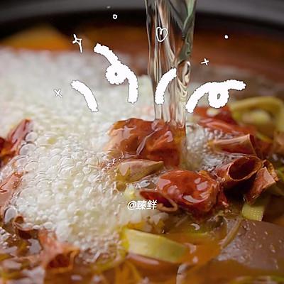 1、加热油,加入小方块火锅料,炒出红油,加入适量清水煮开,捞出料渣。