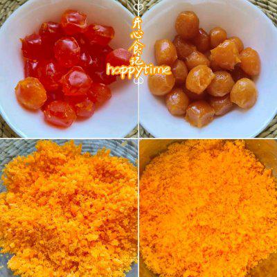 1、将咸蛋黄蒸熟或烤熟,用料理机打碎,然后过筛备用