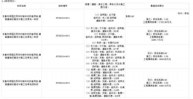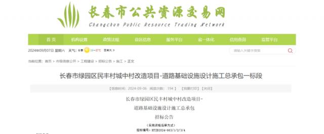9 月 6 日,长春市公共资源交易网发布《长春市绿园区民丰村城中村改造工程》 - 公路基础设施设计工程总承包招标信息。重点内容如下: