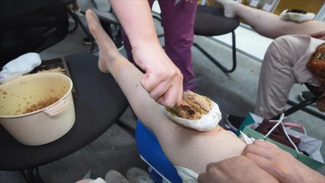 市中医医院风湿科、针灸科护士长钱颖表示:“膝盖围灸一直在病房进行,主要针对类风湿性关节炎、骨关节炎等有膝盖疼痛或关节肿胀症状的患者。,通过燃烧姜片和艾绒来保暖关节,从而达到通脉活血的效果。”