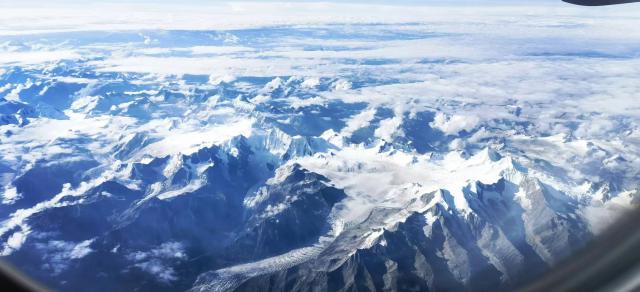 没有时间思考航班的小窗户,绵延的雪山渐行渐远。当我意识到我需要拍照留下这个时候的惊喜时,最好的风景已经渐渐远去,另一个方向,新的山峰即将映入眼帘。