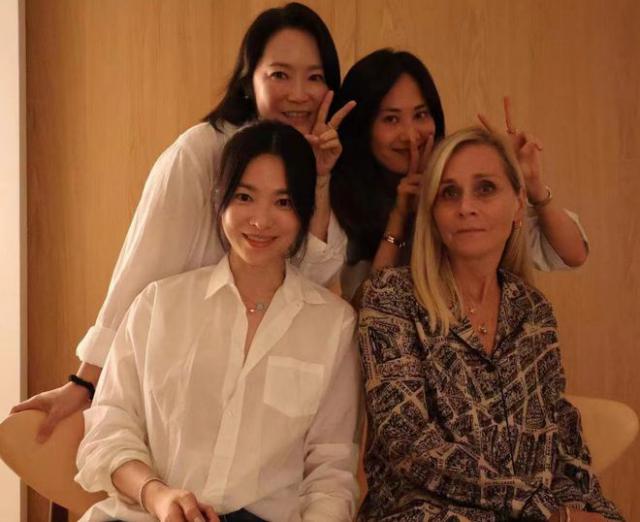宋慧乔·京的高管朋友也展示了他们第二次聚会的照片。照片中,宋慧乔·京穿着一件白色衬衫和一条牛仔短裤,她的长发随意挽起。她的狗在这次聚会上 Ruby,和姐妹们聚在一起,她抱着狗。 Ruby,笑得很开心,笑容也很甜美,气质也很出众。