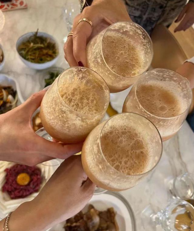 在此之前,这位高管朋友和宋慧乔·京一起出去玩,几个人一起拍了一张大头贴,笑得很开心,一起喝酒聚会。这一次,宋慧乔·京还带着她的高管朋友一起吃饭喝酒,还拍了他们一起吃饭时的美食照片。
