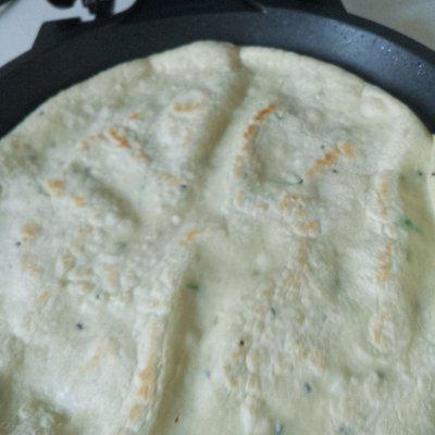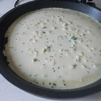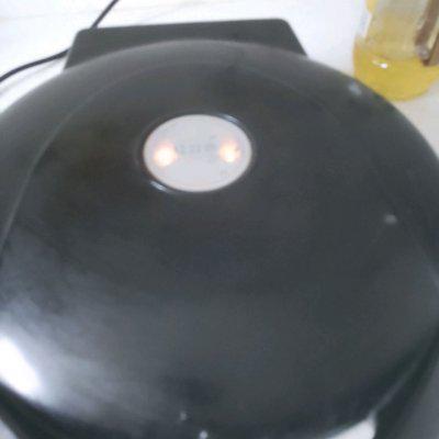 4、电饼铛抹点油,倒入搅拌好的面粉糊,照片如下,