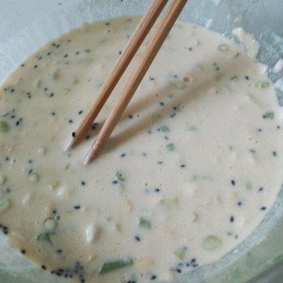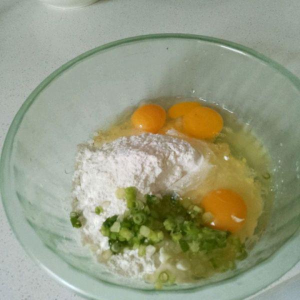 1、鸡蛋,大葱,面粉,一点盐,黑芝麻。