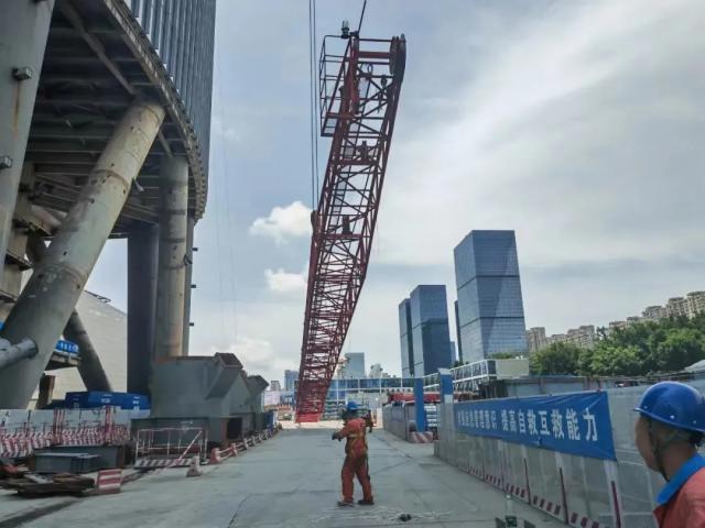 在台风到来之前拆除 2#、3# 塔吊臂。(项目方供图)