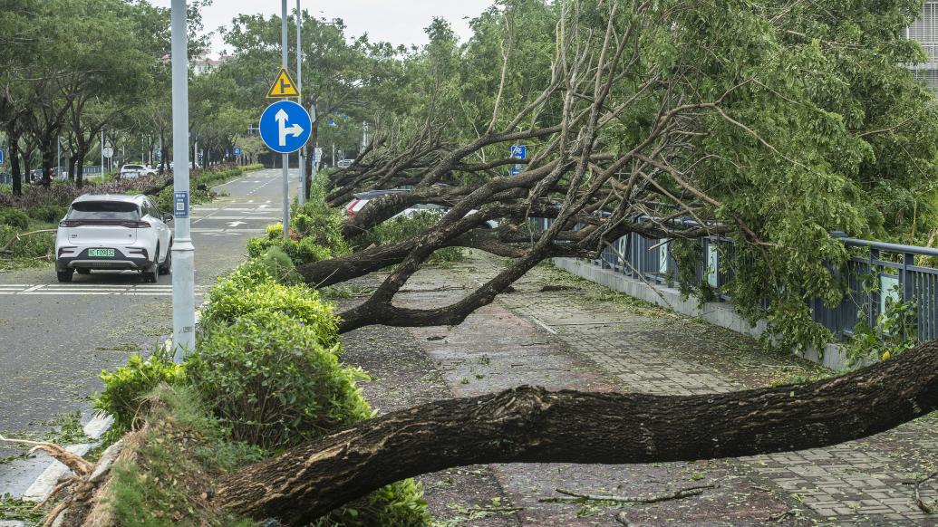受台风“摩羯座”的影响,2024年9月7日,海南省琼海市康庄路成排倒苗。视觉中国 图