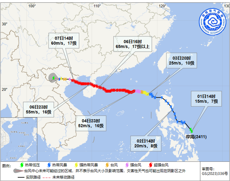 7日15时30分左右第三次登陆越南广宁省南部沿海地区,登陆越南后强度迅速减弱。
