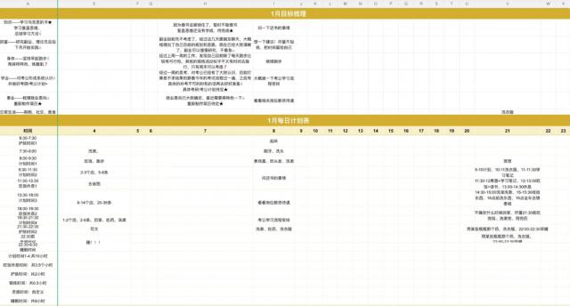 还有一点细节啊,设定月目标,分到每天,还有一点时间管理意识的小萌芽,每天都有一点时间管理意识。 24 吃饭休息需要多少小时,锻炼需要多少小时,睡觉需要多少小时,努力需要多少小时。