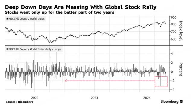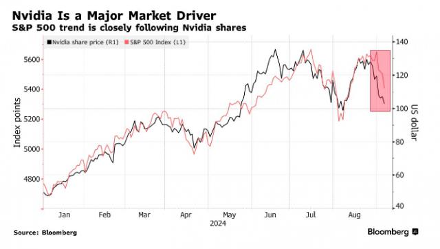 作为今年全球股市的最大动力,英伟达贡献了彭博世界指数。 10% 涨幅的近五分之一。它也成为市场情绪的风向标。上周初,英伟达股票的暴跌蔓延到风险资产,说明如果这些股票表现不佳,市场将面临多大的风险。