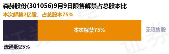 9月9日,森赫股权(301056)2亿股限售股将解禁,占总股本的75%