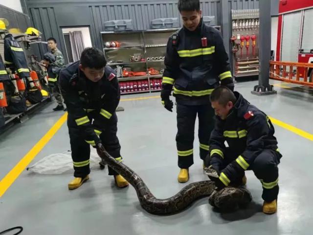 消防队员抓住了蟒蛇