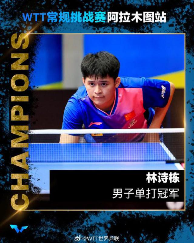 在WTT常规争霸赛中,国乒夺得阿拉木图站5个冠军,林诗栋夺得3个冠军。