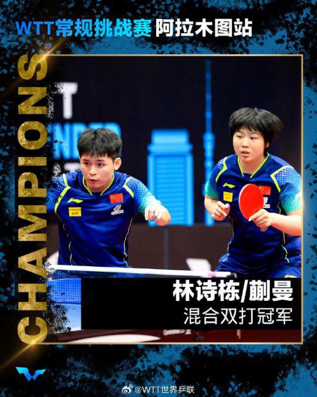 林诗栋混双决赛 / 蒯曼以 11-8、11-6、11-7 罗马尼亚组合内斯库库三局直接击败罗马尼亚组合 / 获得冠军的萨马拉。