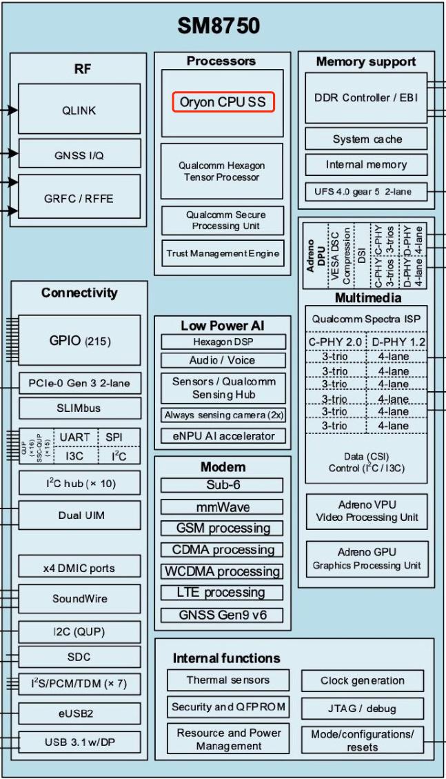 并且骁龙 8 Gen4 的 CPU 结构与以往的型号不同,以前,高通都是采用的。 ARM 公版结构,比如 Cortex-X4、Cortex-A720 等等。