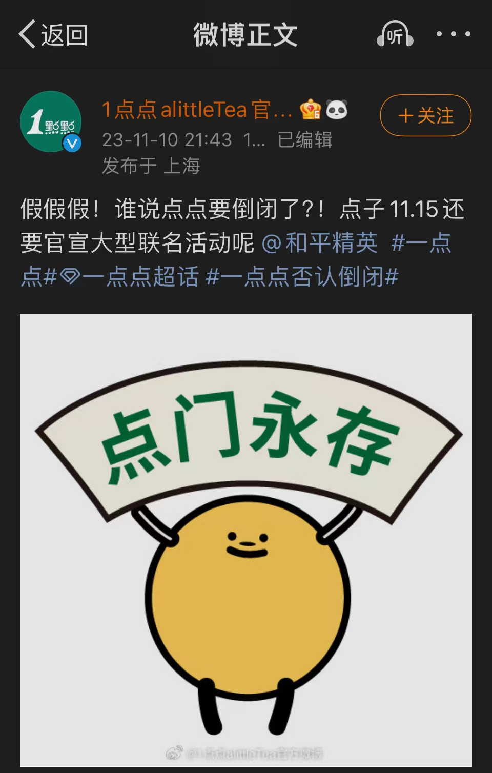 2015年,台湾奶茶CoCo在奶茶市场占据主导地位,之后会玩1点营销也很受欢迎。2017年买一杯排长队的场景一度记忆犹新。去年年底,“退出奶茶行业”的声音突然传来,但官方博客出来辟谣,“谁说一点点就要倒闭了!”。