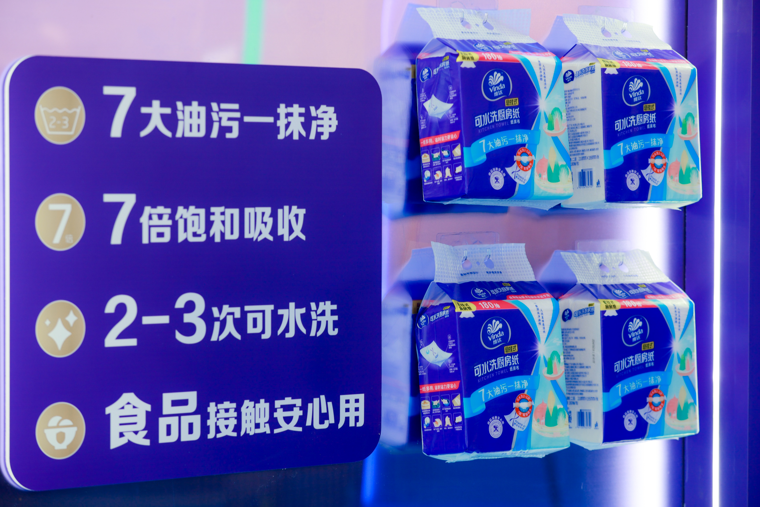 维达超韧Plus挂画采用新一代e-TAD空气感棉柔软技术,纸张加厚30%,全面提升吸水性和体验感。可以轻松适应“上厕所、擦手、擦脸”三种高频纸张场景,带来超厚和非凡的新感受。针对厨房清洁场景,维达全新的可水洗厨房纸挂选用世界领先的Power-X魔速吸技术,打造7倍吸油吸水能力,有效去除各种顽固污渍,为厨房清洁带来新的解决方案,满足消费者在新消费环境下产品更新迭代、使用体验提升的多样化需求。