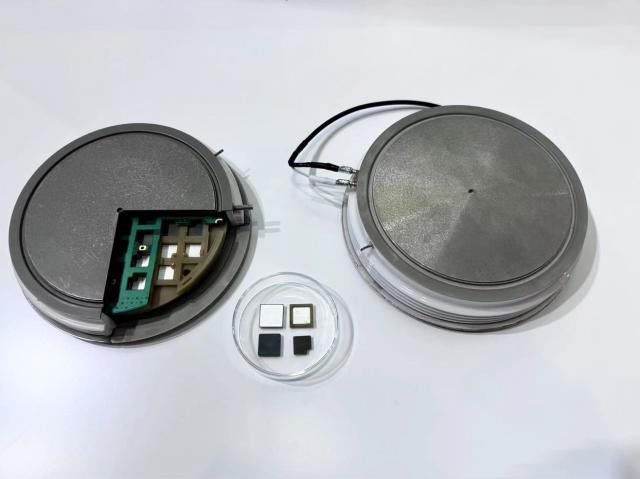 现场展示的大功率 IEGT 选用 PPI 压接封装,最高电压等级达到 最大电流等级为6500V 3000A。而使用 PPI 压接封装 IEGT 有内置二极管和无二极管两种类型,其主要区别在于应用对电流的需求。举个屈兴国的例子,在一个 125 mm平台的 PPI 共有包装 42 一个小方块,比如中间放置。 30 颗 IEGT,其他 12 如果一个方块放置了二极管,那么最大电流就能达到。 2000A;例如,如果顾客需要更多的电流, 3000A,那就需要在那里。 42 所有的方块都放在里面 IEGT 芯片,另外在外围搭配所需的二极管。