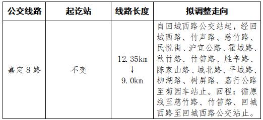 新理由:提高车辆周转效率,提高城北大居公交连接轨道水平。补充嘉定 8 道路调整,嘉定 19 公共汽车空白被撤销后。