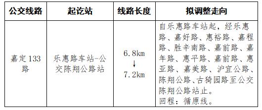 调整理由:结合云翔扩大住宅道路建设和新建住宅小区入住情况,提升线路走向,扩大嘉定 133 道路服务覆盖范围。