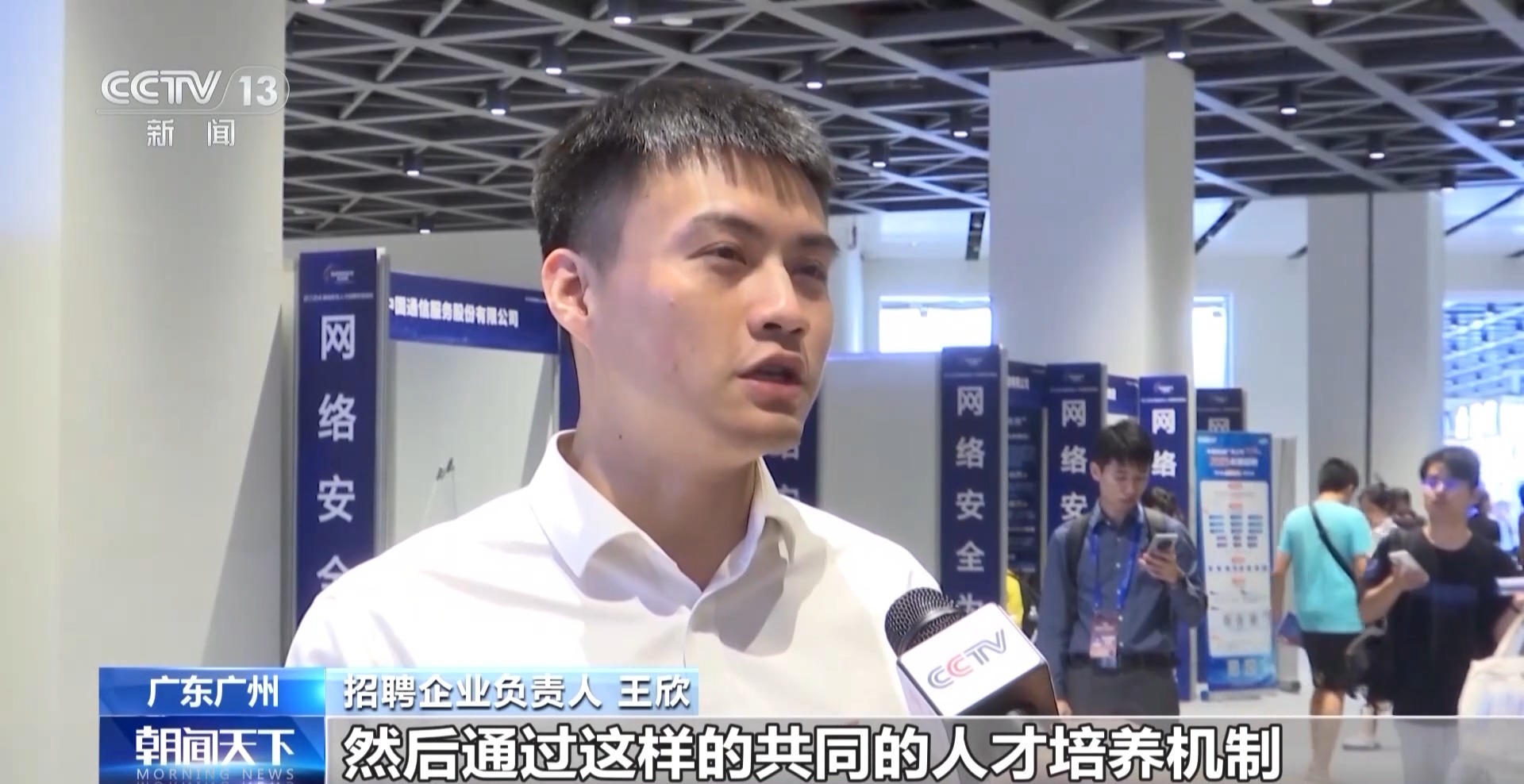 招聘公司负责人 王欣:其实我们现在,包括我们的企业,和其他一些公司一样,其实是和很多高校联合创办了一些网络安全相关的学科和学校。然后,通过这样一个共同的人才培养机制,我们可以把学校里学到的一些理论,以及如何在他毕业前迅速与企业的一些需求联系起来。