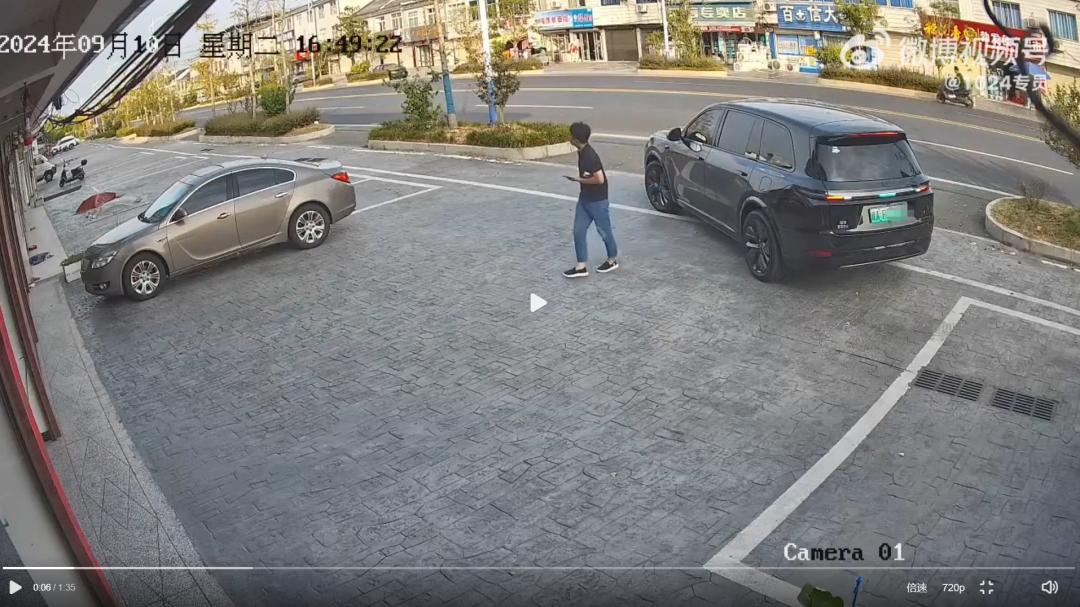 昨日 ( 9 月 10日 )下午,一个皖 A 牌照的理想 L9 车主,把车开到一个停车位前,人就下了车,让车智能完成自动停车。