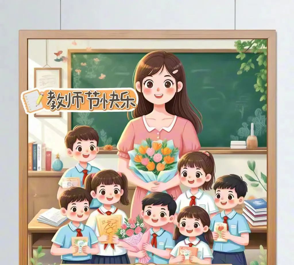 图片生得不错,但是海报上的字是错码。黄爸爸试了好几次,还是生不出“教师节快乐”这个词。为了节省时间,他直接把图片搬到美图秀秀,贴了一行字,然后发给家长。