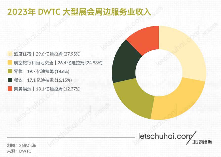 消费者,是办展最直观的经济结果。数十万海外商务游客的涌入,可以带动周边服务业的增长,如酒店、交通、餐饮、商务娱乐等; DWTC 消息称,仅去年举办的大型活动就为迪拜创造了近7万个就业机会和33.6亿迪拉姆家庭可支配收入。这些收入将在未来转化为消费。