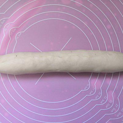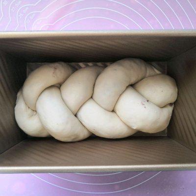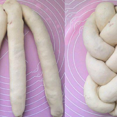 9、依次做好三个面团,编成辫子 ⚡️每块面团的擀皮和糯米馅尽量一致。我的是第一个擀大的,用了很多紫米馅,导致整容失败。
