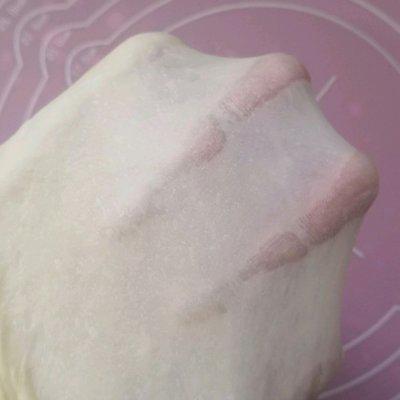 4、你会发现面团慢慢变得光滑不粘手,直到有一大片薄膜,有洞也是光滑的,可以整容。 ❗️家里的手揉吐司不需要盲目追求手套膜。我觉得只要能出膜,做好发醇就能成功。