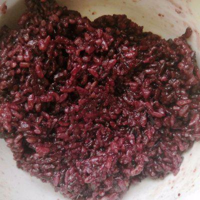 1、将紫糯米洗净两次,加入适量的水,用电压力锅煮好,如果是普通的电饭煲,建议泡一两个小时再煮,取 100 大约克的糯米趁热拌适当的糖,放凉备用