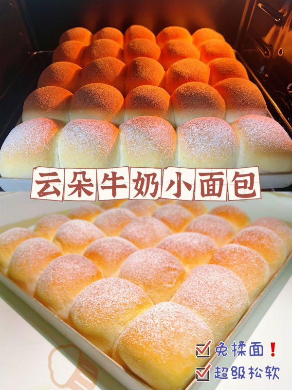 云牛奶小面包(无油少糖)❗️免和面免手套膜❗️小餐包